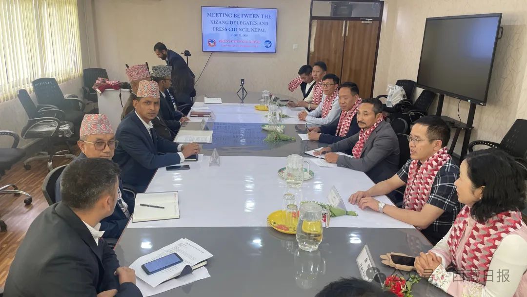 圖為中國(guó)西藏代表團(tuán)拜訪尼泊爾新聞委員會(huì)。
