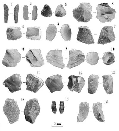 寧夏水洞溝遺址第7地點(diǎn)出土的部分石葉和完整石片。來(lái)源:中國(guó)科學(xué)院網(wǎng)站