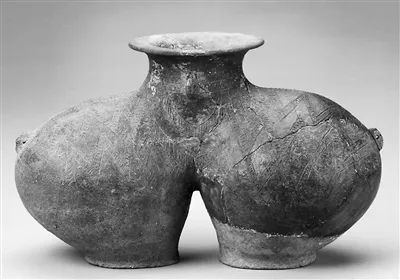 西藏昌都卡若遺址出土的雙體陶罐。西藏博物館藏