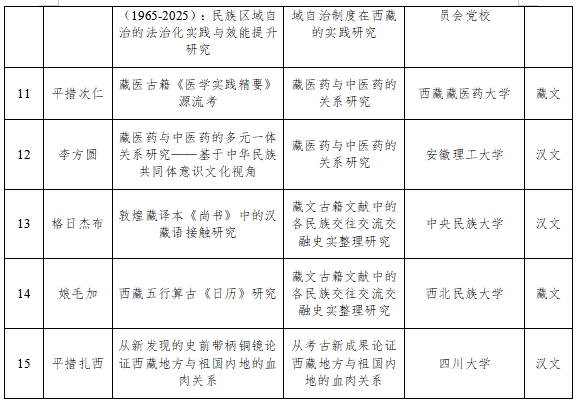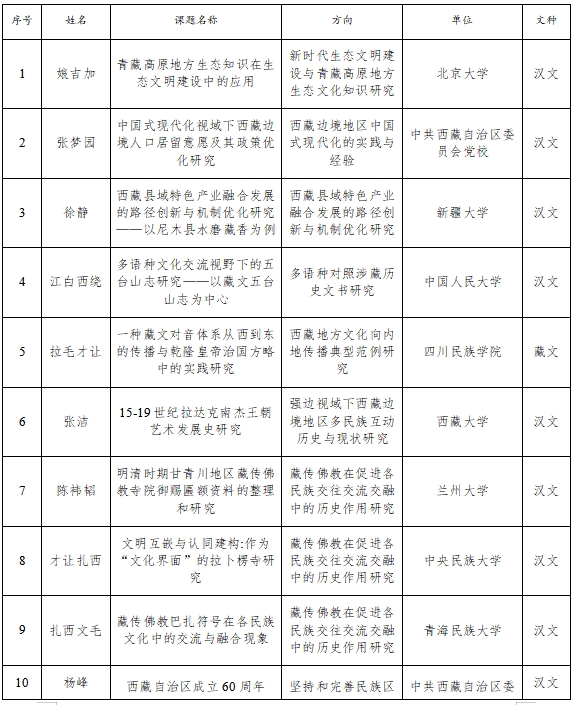 根據(jù)《中國藏學(xué)研究中心青年項(xiàng)目管理辦法》的有關(guān)規(guī)定,現(xiàn)將2025年度中國藏學(xué)研究中心青年項(xiàng)目擬立項(xiàng)名單予以公示。公示期間,對(duì)擬立項(xiàng)項(xiàng)目有異議者,請(qǐng)?zhí)峤粫娌牧虾拖嚓P(guān)證據(jù)材料至中國藏學(xué)研究中心青年藏學(xué)會(huì),并同時(shí)提供本人真實(shí)姓名、工作單位和聯(lián)系方式。逾期不予受理。