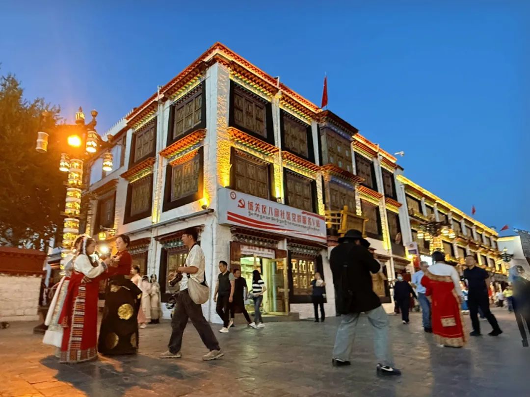夜幕低垂,八廓街依舊熙攘。身著改良款碎花泡泡袖藏服的少女,在鏡頭前輕轉(zhuǎn)笑顏,發(fā)間綠松石與閃爍燈光交輝,點亮高原夜色。這一幕,并非千年古城的尋常街景,而是新時代西藏擁抱世界的魅力縮影。
