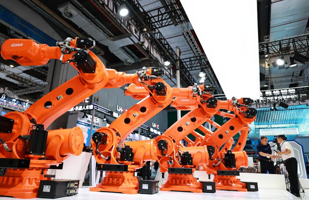 這是2025年9月23日在上海舉行的第25屆中國國際工業(yè)博覽會(huì)上拍攝的一組大型工業(yè)機(jī)器人產(chǎn)品。新華社記者方喆攝