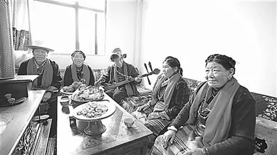 拉孜縣熱薩鄉(xiāng)強(qiáng)公村群眾在新居內(nèi)共度重陽節(jié)。旦增嘎瓦攝