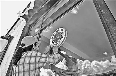 定結(jié)縣郭加鄉(xiāng)乃村重建點(diǎn),居民為新家貼福字。旦增嘎瓦攝