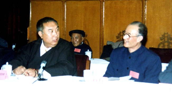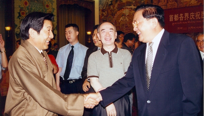 2000年10月26日 中央政治局常委、國家副主席胡錦濤與拉巴平措總干事交談