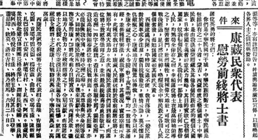 康藏民眾代表慰勞前線將士書(shū)(相子翁堆等)(《新華日?qǐng)?bào)》1938年7月12日)
